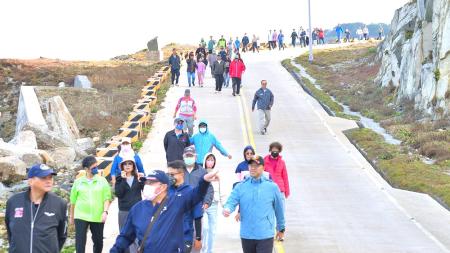 連江縣衛生局與東引鄉公所16日舉辦「114年度體育季—戒菸盃健行活動」,鄉親一起以悠閒的步伐走出健康。(圖/文:陳其敏)