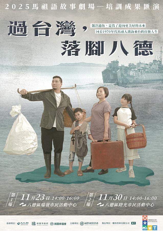 【記者王致潔報導】「2025馬祖語故事劇場」培訓成果匯演《過台灣,落腳八德》將於11月23日(日)14:00-16:00在八德區瑞發市民活動中心,以及11月30日(日)14:00-16:00於八德區陸光市民活動中心進行演出。誠摯邀請民眾蒞臨觀賞,一同聆聽那跨海而來的故事,感受馬祖語的生命力與文化溫度。