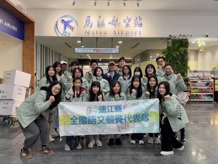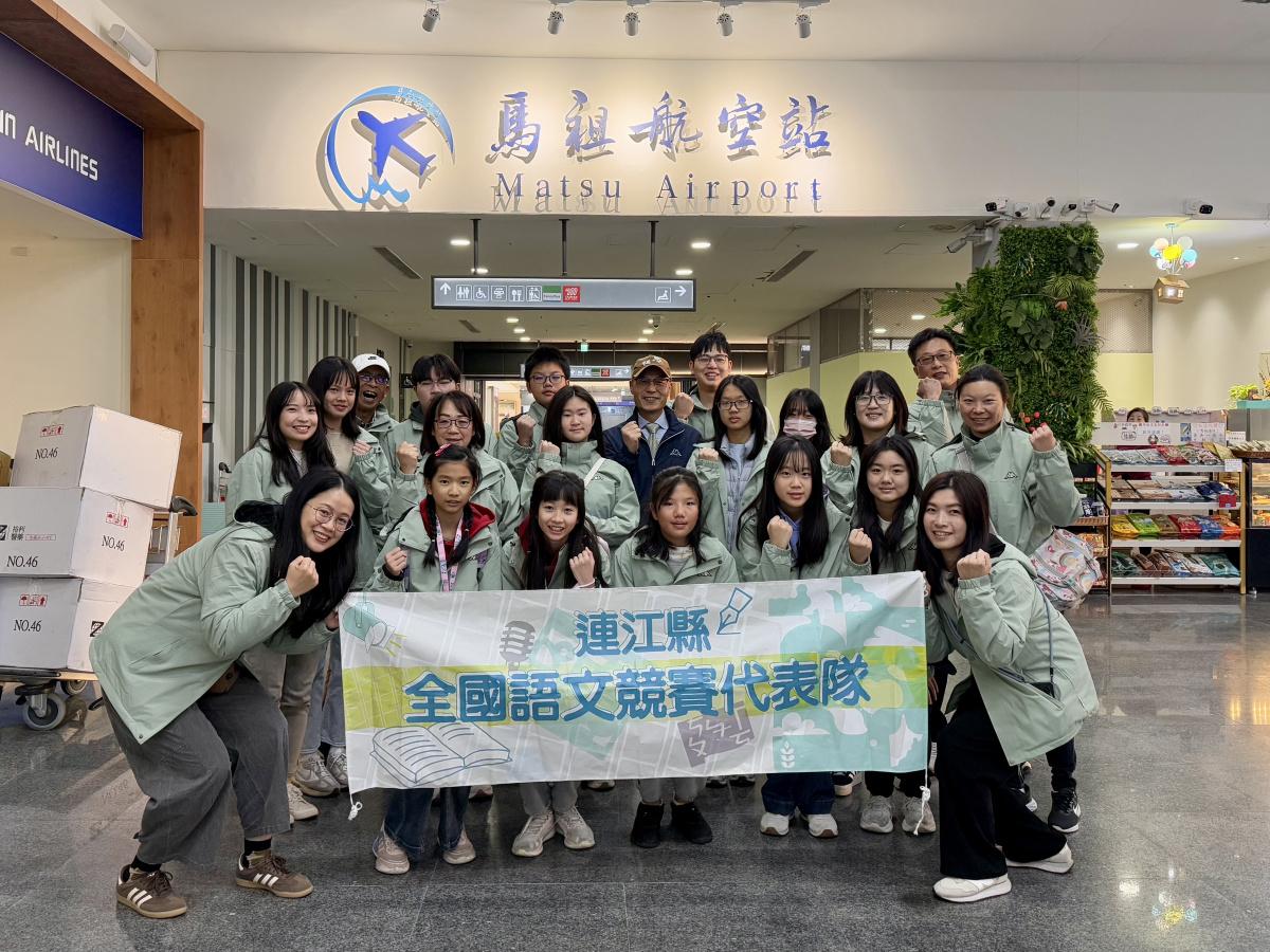 【本報訊】連江縣全國語文競賽代表隊15位學子在師長陪同下,今日上午分別自南、北竿搭機赴台,準備參加將於11月23日(日)在台中市舉行的全國語文競賽。教育處長王禮民特地到場送機,為學子們加油打氣。