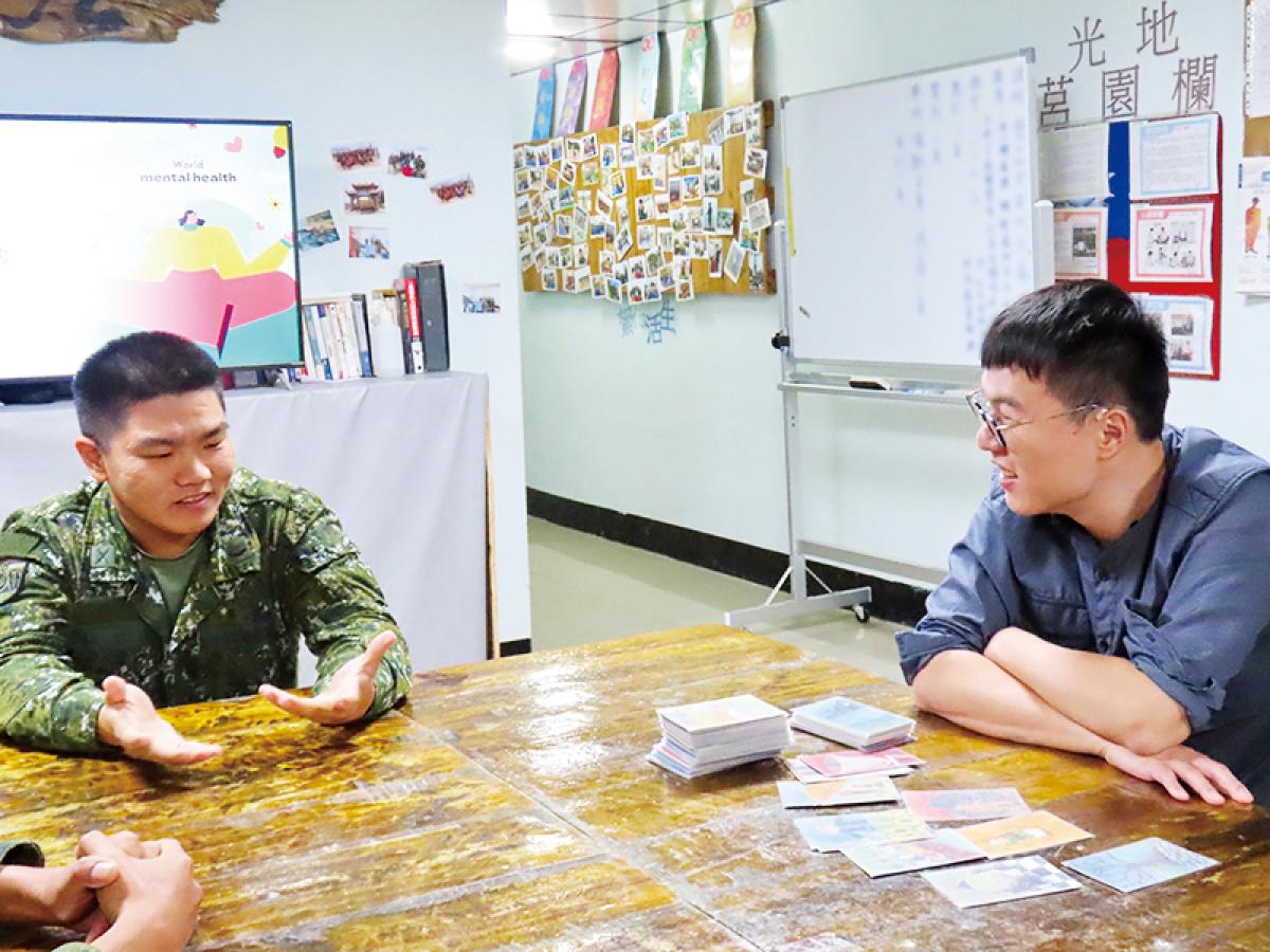【特約記者王銓詰/南竿報導】馬防部日前配合國軍心理健康照護方案,於南竿守備大隊步兵連辦理團體輔導,以「同理自己、同理他人情緒的非暴力溝通」為主題,由張誌閔諮商心理師帶領官兵一同探討,面對生活中不同的人、事、物,該如何表達溝通。
