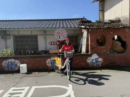 再往前騎,我們看到一口井,原來那是百年的荷蘭井,雖已不再使用了,但卻留下來給後代子孫,讓人知道那是之前我們所用的井水,我和老公頑皮的在井邊打水並合影,而旁邊一棟傳統的三合院古厝,是間民宿,讓喜歡來深度體驗的人住宿,因和我們的阿公、阿嬤先前所住的老房子一樣,對我們沒有太大的吸引力。
