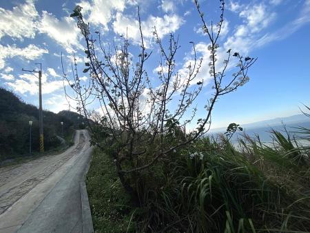 【記者鄭禮頤報導】馬祖進入東北季風季節後,芹壁半山的冬季景致有了不一樣的變化。沿著通往龍角峰五位靈公廟的山路前行,漫遊在山路上最先映入眼簾的,是一株在寒風裡依舊綻放的豆梨樹。豆梨花的正常花期落在每年二至三月,如今卻在初冬提前報到,枝頭上白綠交織的花苞與小花在冬陽下微微閃動,替略顯寧靜的山坡增添一抹柔和亮色,也成為今年最意外的冬日驚喜。