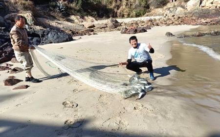 牛角海邊湧現大批烏魚,吸引眾多鄉親攜網帶竿前往捕撈、垂釣,人人滿載而歸。(圖:讀者提供)