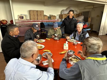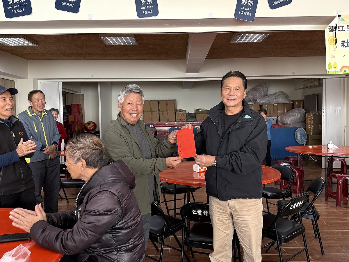 王忠銘首先致贈鐵板社協加菜金,表達對社協的支持與鼓勵。他表示,身為鐵板鄉親,在座各位都是熟識多年的好鄰居,此行旨在歲末之際深入社區,讓大家感受到溫暖,並歡迎有需要的鄉親提出訴求。用餐期間,他親切關心大家的健康與生活起居,並穿插幽默話語,逗得鄉親們笑聲連連,氣氛輕鬆愉快。
