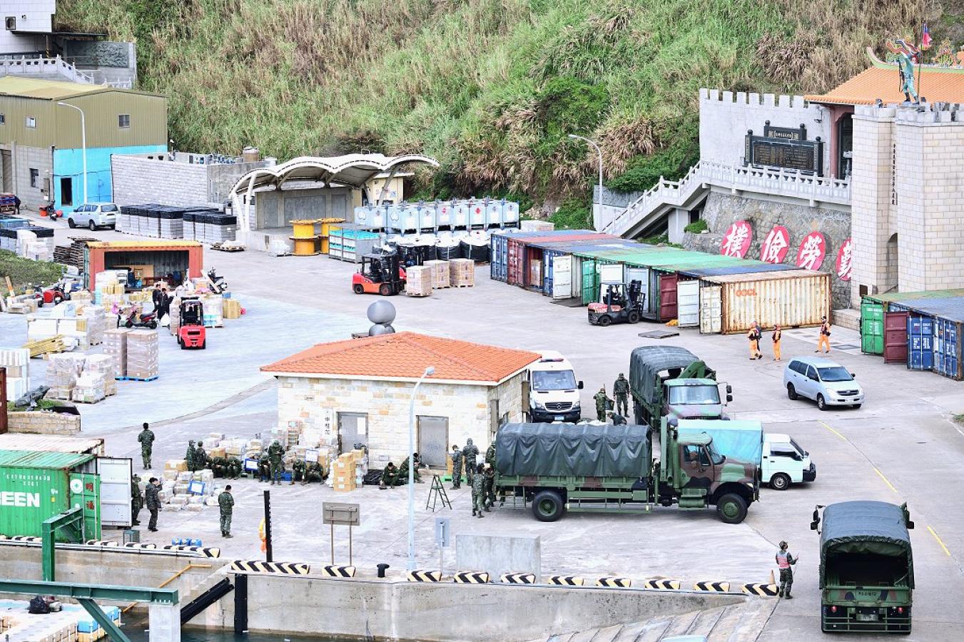 中柱港碼頭進行鋪面更新工程,近來貨船改停漁船碼頭卸載。昔日無碼頭時,忠誠門前澳口就曾是東引最忙碌的碼頭,如今再見貨物堆置,彷彿重現舊時景象。(圖/文:陳其敏)