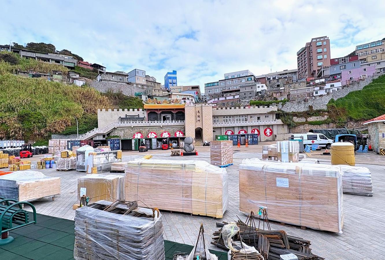 與採用艏門進出的新臺馬輪不同,貨船卸載必須以吊掛方式進行,先將貨櫃吊放至岸邊,再由收貨人分批領取。受限於漁船碼頭腹地狹小、無法堆置大量貨櫃,只能就近利用忠誠門廣場作為臨時卸載場域。隨著貨船抵達補給,原本寬闊靜謐的廣場,也瞬間湧入作業人車,呈現久違的繁忙景象。