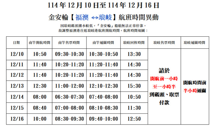 為確保航行安全與旅客搭乘順利,特調整此期間的航班時間。