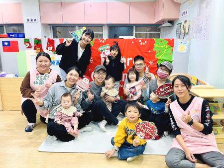 東莒公共托育家園與幼兒園愛心班合影留念,提前歡慶聖誕。(圖/文:蔡夢玲)