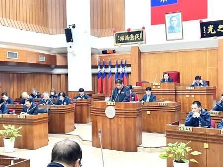 議會審議本縣115年度地方總預算暨附屬單位預算案第二、三讀會,縣長王忠銘率縣府各機關單位主管列席備詢。聯席審查小組召集人副議長林明揚報告審查結果,經出席議員無異議後,進行第二讀會。