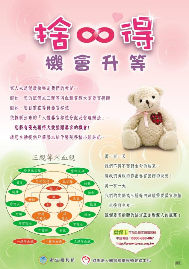 2024年4月起,衛生福利部開放民眾使用健保卡,線上簽署「器官捐贈同意書」及「預立安寧緩和醫療暨維生醫療抉擇意願書」。相較過去書面簽署「器官捐贈同意書」需要約2個多月方能完成人工註記程序,線上簽署僅需7到14天內即可完成健保IC卡註記,縮短了內部審核時間,讓民眾臨終意願可更快落實。