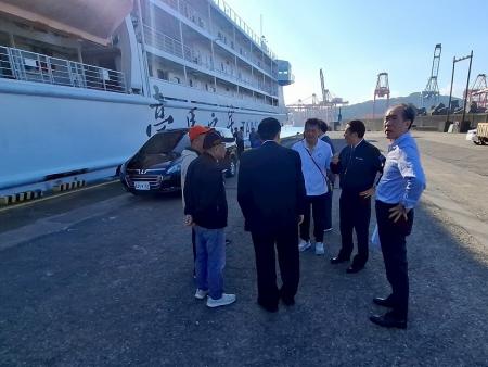 為確保馬祖島際航運安全與春節疏運順利,縣長王忠銘與連江縣議會議長張永江於今(16)日連江縣議會定期大會閉會後,專程前往基隆港西29號碼頭,勘察正在台灣進行年度歲修作業的東海明珠。此次行程由連江航業公司董事長劉性謙陪同,並由工程師潘偉任及南北海運工程人員,現場解說歲修內容與進度,實地瞭解各項工程執行情形。