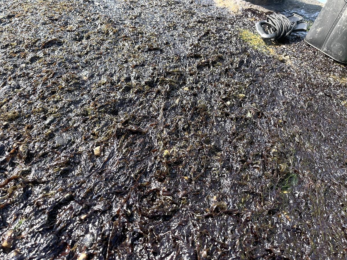 【記者宋幸儒報導】紫菜現蹤!西莒菜浦澳港邊階梯紫菜約15公分長,喜歡釣魚居民邊釣魚邊採紫菜,悠閒又自在。