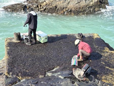 紫菜現蹤!西莒菜浦澳居民享受邊釣魚邊採紫菜的樂趣。(圖/文:宋幸儒)