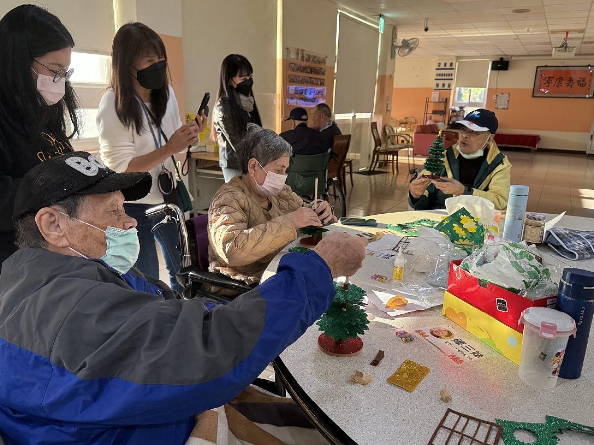 【記者王致潔報導】大同之家昨(16)日下午於四樓舉辦手作聖誕樹DIY活動,在主任曹蘭珍及社工、照服員等人陪伴引導下,近20位家內長輩親手完成獨一無二的聖誕樹,並開心留下充滿成就感的合影。