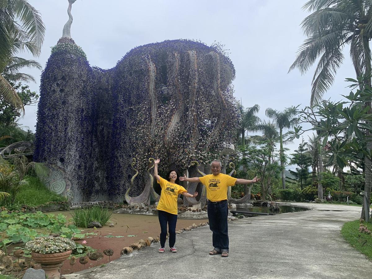 靠著導航,我們來到了「徐徐咖啡坊」,意外發現前面的向日葵田園,它似乎正向我們打招呼,給人一種正向開朗的感覺,像陽光般溫暖著大家的心,難怪它又有「太陽花」之稱,愛花的我們,無法逃過它的魅力,開心的與它合照一番。