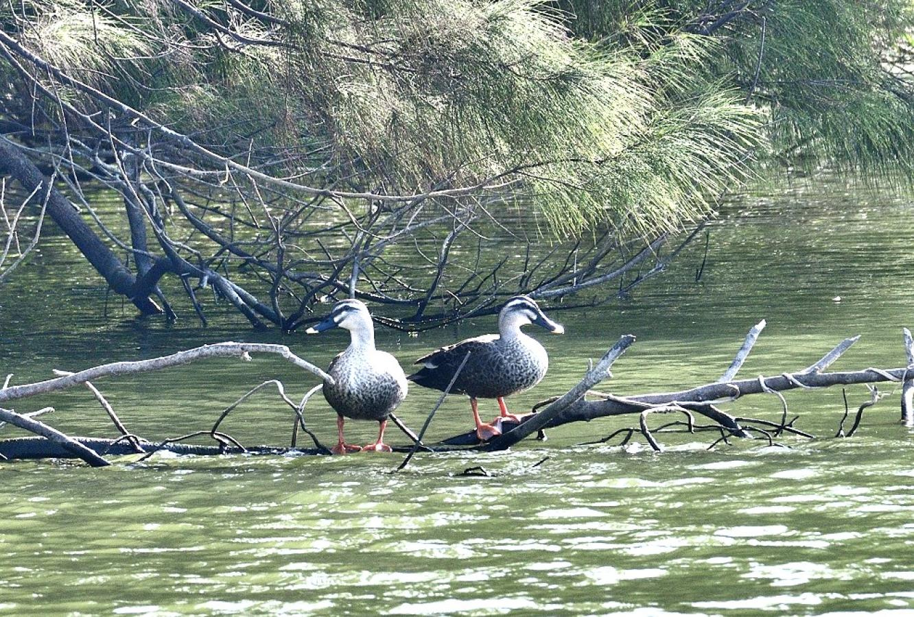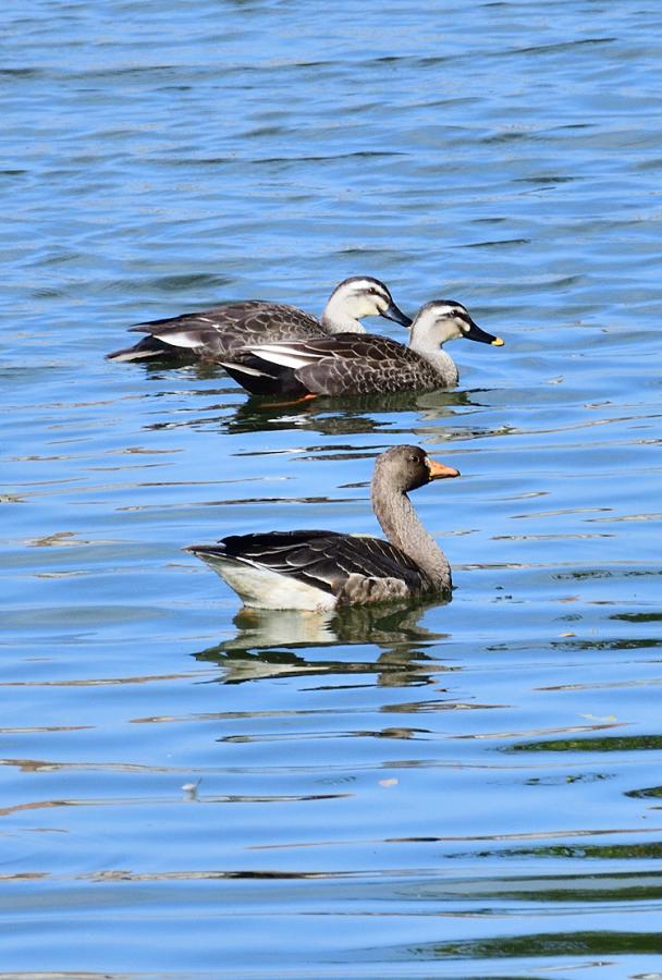 東湧水庫迎來過冬水鳥,花嘴鴨等雁鴨現身在寧靜水面悠閒划水。(圖/文:陳其敏)