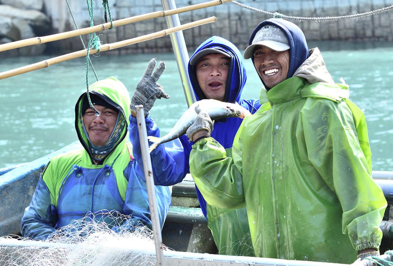 東引中柱港,除了原有的大陸漁工外,近年來自印尼、越南等國的外籍移工已成為港邊不可或缺的勞動力。入冬後漁汛登場,他們的作業節奏也隨之加快,清晨、黃昏都能見到忙碌的身影。儘管工作辛勞,當有人舉起相機,這些遠離家鄉在海上討生活的漁工,仍以最真誠的笑容回應,甚至大方擺出姿勢,為寒風中的港畔增添幾分溫暖與活力。