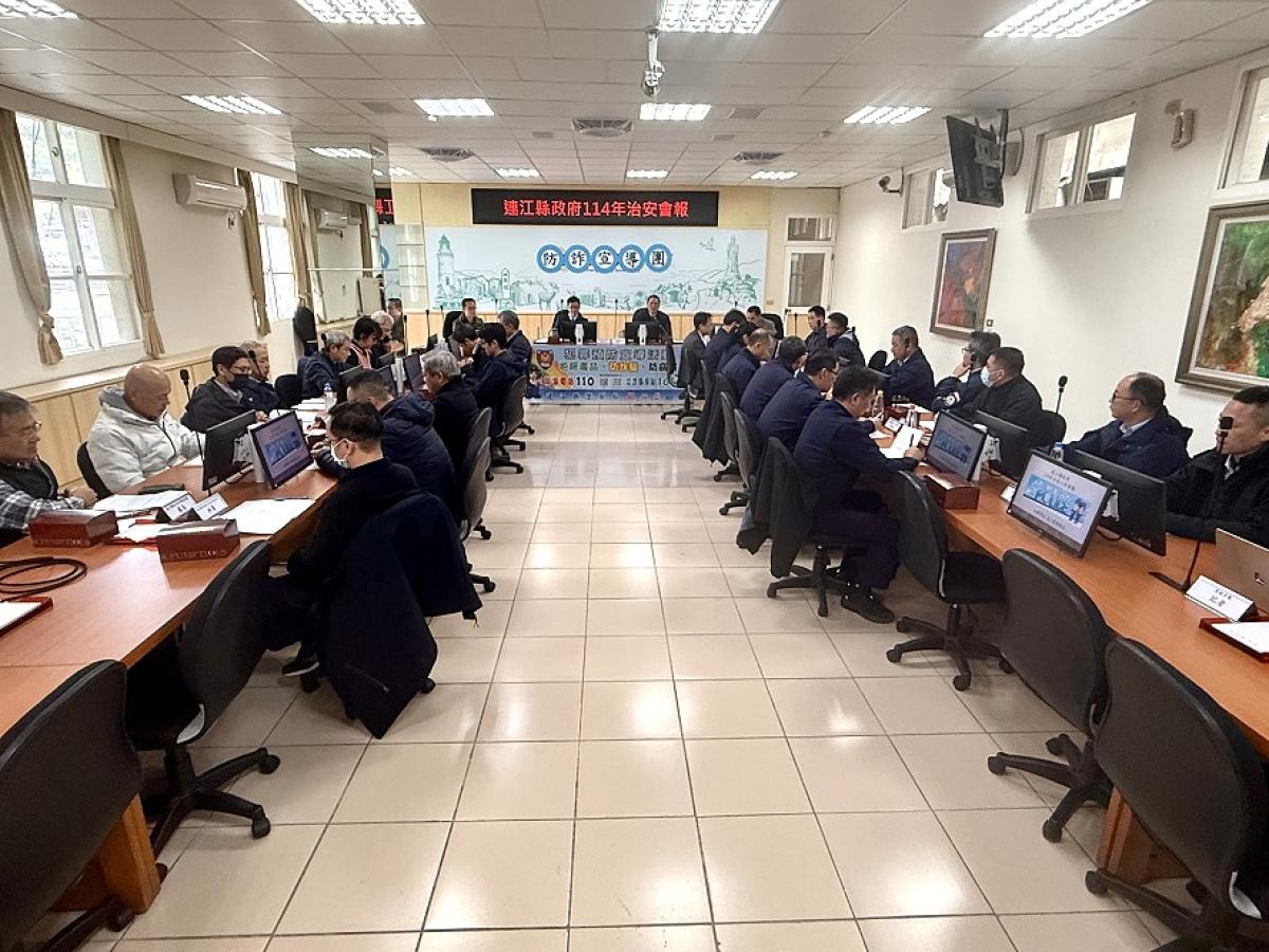 今年度治安會報昨(19)日上午10時30分於縣府會議室舉行。與會者包括代理秘書長陳明傑、福建連江地檢署檢察長林彥良、馬防部副參謀長林義翔、警察局長陳保安,以及消防局、海岸巡及縣府相關治安單位代表共計約36人。