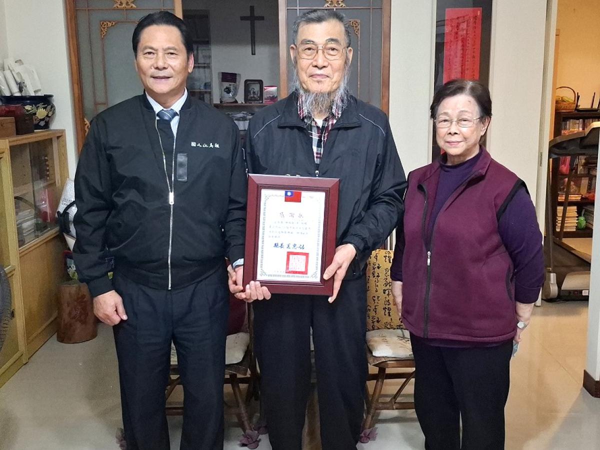 【本報訊】為感謝馬祖在地書法家陳國春老師慷慨捐贈51幅書法作品予馬祖民俗文物館典藏,縣長王忠銘日前利用赴台行程,專程前往陳國春老師位於新店住處致贈感謝狀,表達縣府與鄉親最誠摯的敬意與謝意。王忠銘表示,陳國春老師以一生筆墨回饋家鄉,讓珍貴的書法作品得以在馬祖被保存、被看見,為地方文化資產注入深厚而溫暖的藝術能量。