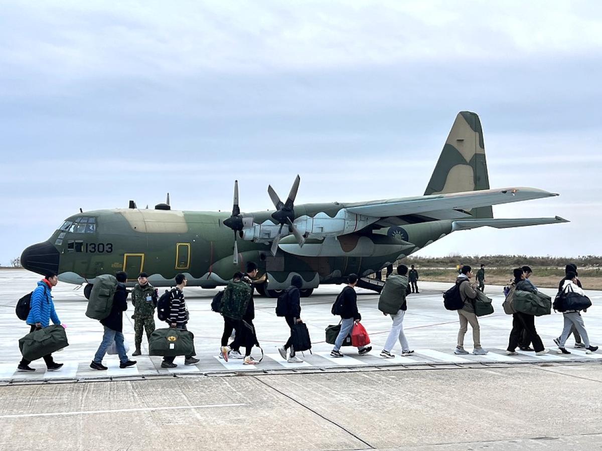 為疏運滯留旅客,C-130軍機聖誕節出動疏運任務,搭載61人往台北。(圖/文:馮紹夫)