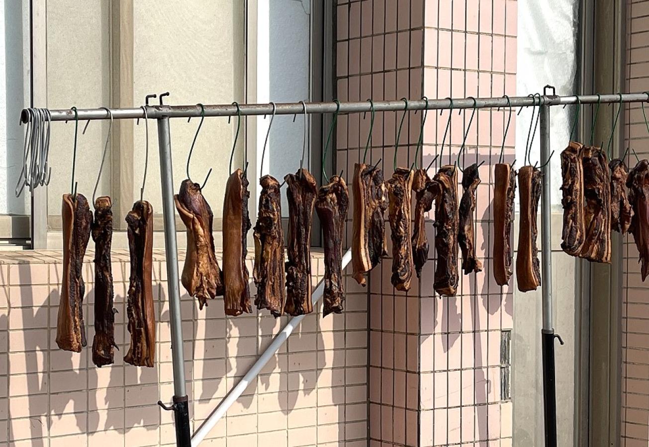 【記者宋幸儒報導】適合風乾的季節!在冬天,馬祖的街頭經常看到有人在晾魚乾,在西莒不僅有人晾魚乾,還有人在晾豬肉。西莒鄉親網路上學習加上自己改良,將豬肉晾出一番好滋味。