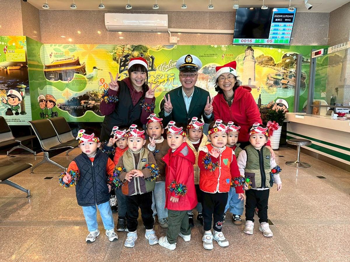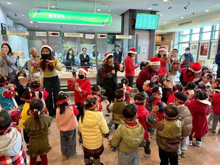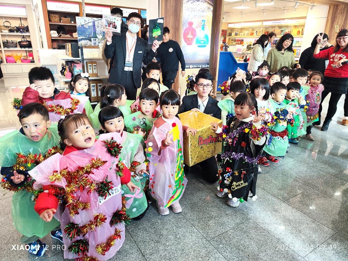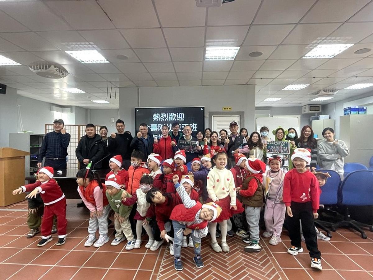叮叮噹!聖誕佳節來臨,介壽附幼可愛的小朋友們穿上聖誕服飾,分組前往鄉公所、郵局、警局、機場等地報佳音。孩子們載歌載舞,投入自信表演,為各機關與民眾送上溫暖祝福,現場充滿歡樂聖誕氣息。