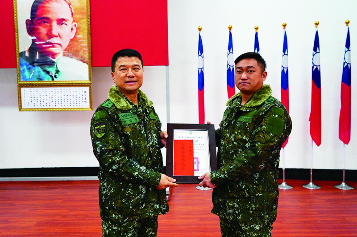 指揮官頒發表現優異單位加菜金。