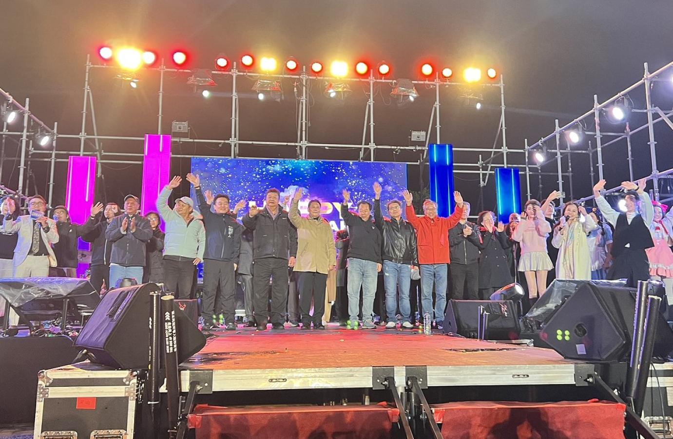 接近午夜12時,縣長王忠銘、立委陳雪生、議長張永江以及縣府工作團隊、鄉長林志東、表演藝人共同上台並與全場民眾一起倒數,所有人用歡喜心迎接2026嶄新的開始!