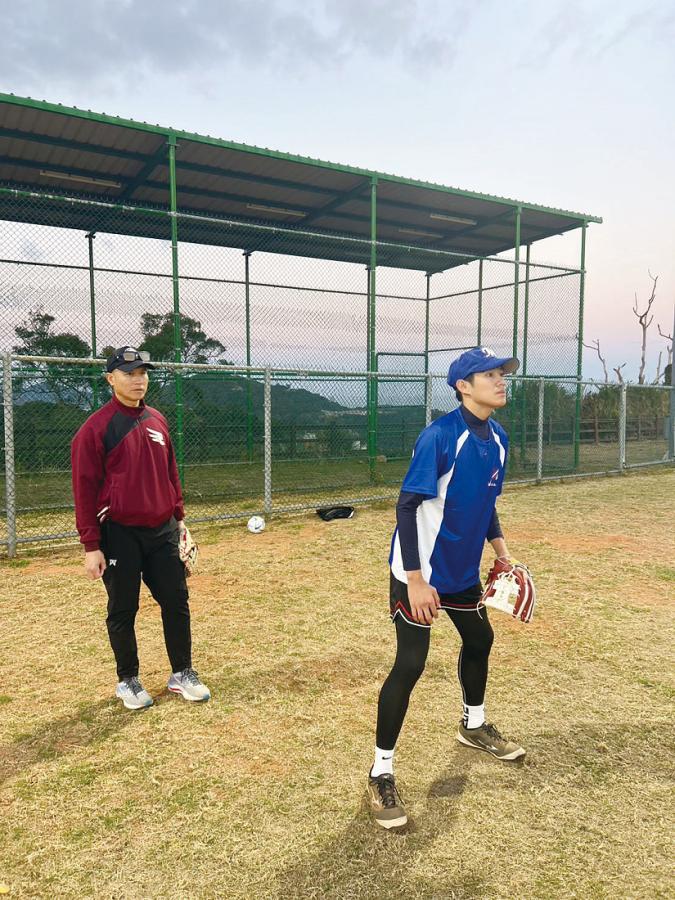 樂天桃猿二軍總教練鄭兆行(圖一右)履行與馬中校長謝崇耀的承諾,日前搭機來馬指導馬祖高中棒球隊。(圖/文:馮紹夫)