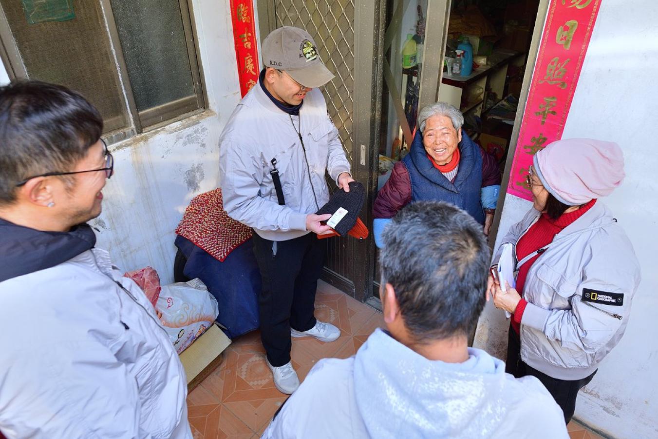 強烈冷氣團來襲,東引鄉民代表會走入社區關懷長者,親手送上禦寒毛帽,傳遞寒冬中的溫暖與祝福。(圖/文:陳其敏)