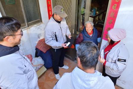 【本報訊】冷氣團一波接著一波,氣溫持續探低,昨(3)日適逢新年第一個週末,東引鄉民代表會主動走入社區,展開關懷行動,逐戶探訪年滿65歲以上的長者,親手送上保暖物資,並致上誠摯的新年祝福。許多長輩收到精美毛帽後紛紛表達感謝,臉上洋溢著溫暖笑容,直呼「心都暖起來了」。