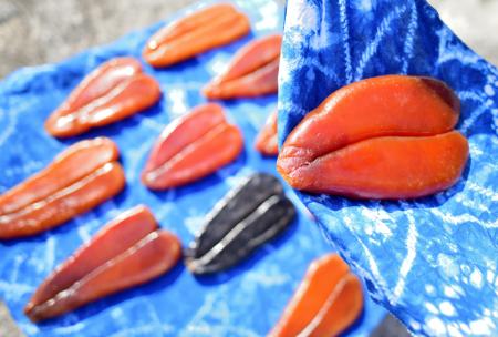 東引野生烏魚子在冬季低溫與寒風環境下自然風乾,魚卵顆粒飽滿、色澤透亮,是歲末年終的限定珍饈。(圖/文:陳其敏)