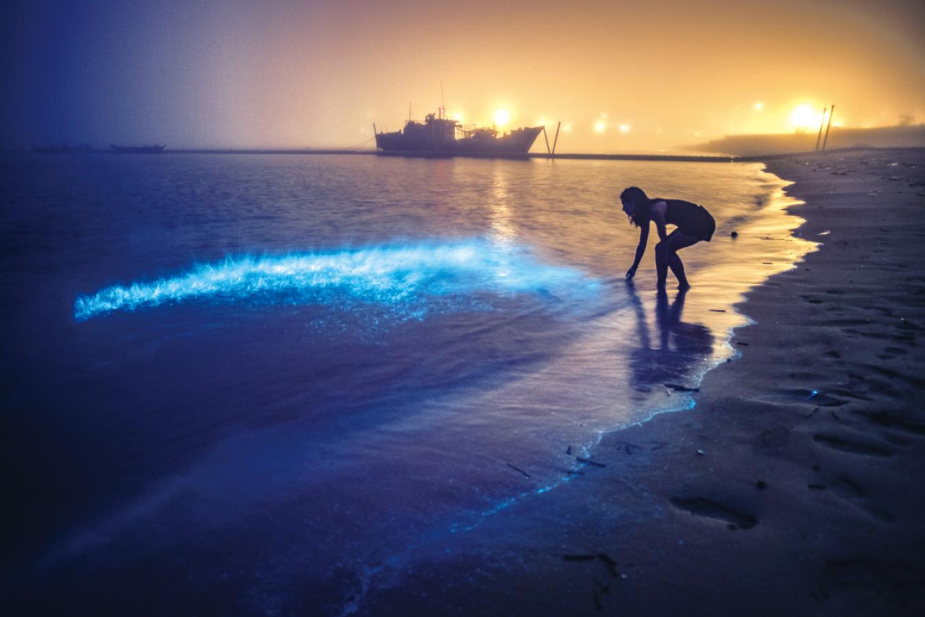 藍眼淚為一種夜光藻,受到輕微擾動會發出藍色螢光,四到六月為最佳觀賞季節。除了可至南竿北海坑道體驗夜間搖櫓,也可以參加娛樂漁船業者規劃的海上遊程。