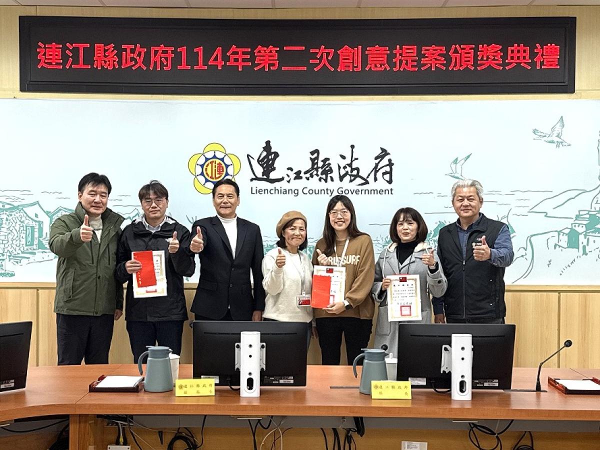 【記者王致潔報導】連江縣政府6日上午於縣府會議室舉辦114年第2次創意提案頒獎典禮,表揚在政策創新與公共服務上展現前瞻思維的優秀提案,個人組特優由交旅局黃如雅的提案獲獎,團體組則由衛生局、工務處的提案獲特優。縣長王忠銘為其頒獎表揚,肯定獲獎同仁能從實務問題出發,結合專業提出具體可行的解方,並期勉縣府團隊持續以創意與行動力,提升縣政效能,回應民眾需求,增進整體公共利益。副縣長陳冠人亦建議透過跨部門橫向連結,呼應天下雜誌的參賽KPI,將創意提案深化並擴大推動,進一步提升整體效益。