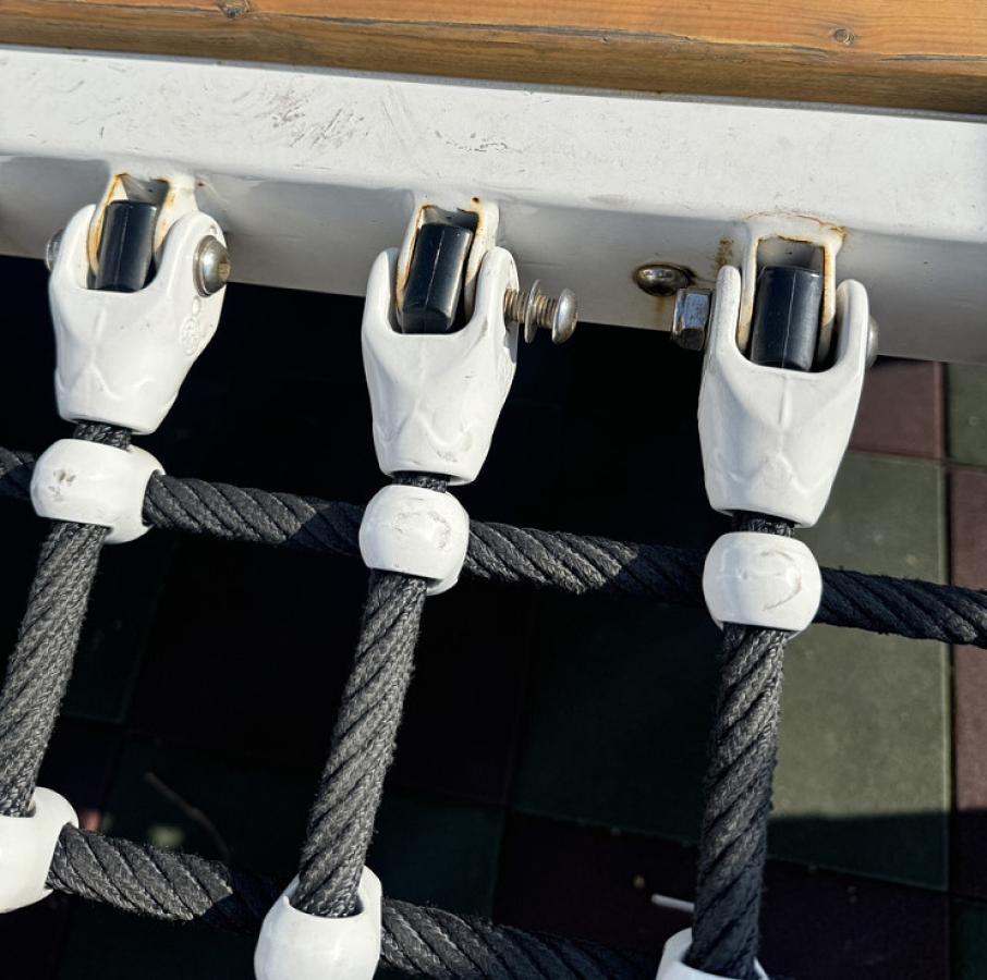 【記者馮紹夫報導】山隴白馬王公園遊具疑遭人惡意破壞,民眾發現遊具防鬆螺絲鬆脫,為避免造成孩童安全危險,工務處已經拉起警告線,暫時封閉遊具,待廠商完成維修後再行開放。