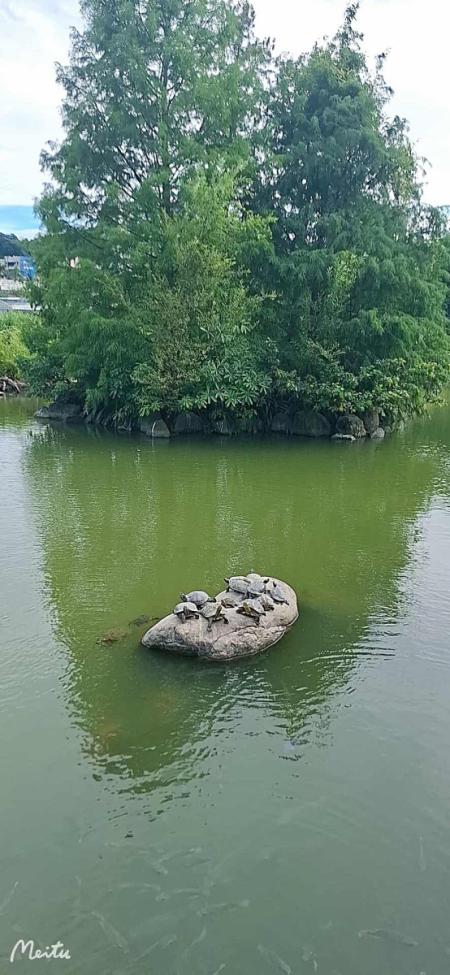 再往前走,是醉月湖。湖面如鏡,映照藍天與綠樹,天鵝與水鴨自在悠游,構成一幅靜謐的畫面。坐在湖畔的長椅上,看著湖光粼粼與烏龜的身影,不禁讓人感受到生命的和諧與寧靜。