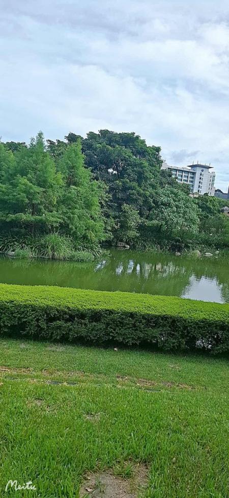 我們首先來到 公圳水源池。這裡是校園內的一處靜謐水域,池水清澈見底,綠意盎然的樹木圍繞著池塘。設有親水步道,行走其間可感受自然的氣息。坐在池畔,任微風拂面,心靈也隨之沉澱。