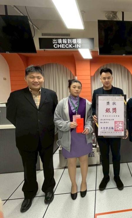 拿到這個獎首先要謝謝怡秀老師,謝謝她這麼認真的教我們,在她本身業務繁忙的情況下,每次練習都到很晚,真的很辛苦!還要謝謝其他老師的鼓勵,雖然比賽當下沒有發揮真正實力,真的很想怪當時的自己,但想想覺得沒關係,過去就過去了,下次可以表現更好。還要謝謝城市科大的學長姐,他們真的很貼心也很溫柔,也一直鼓勵我們一定可以得獎的,真的很謝謝這段時間,幫忙我們鼓勵我們的人。我會把溫暖與愛,繼續傳遞給世上需要的人。