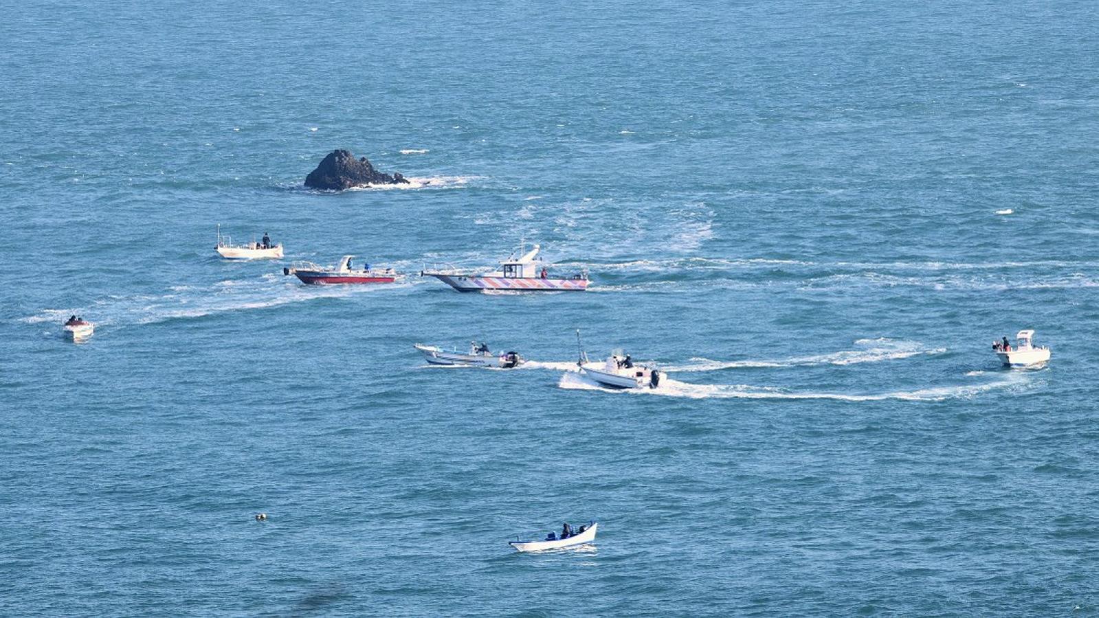 海象轉好 東引多艘動力小船聚集北固礁周邊釣鱸魚
