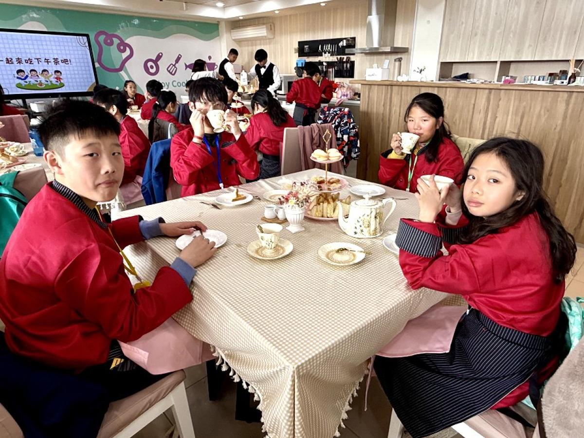 仁愛國小六年級符蘊尹與介壽國小五年級劉又菱皆表示,平時就喜歡烘焙,能參與相關職業體驗讓她們收穫滿滿。符蘊尹進一步分享,以前吃東西只是為了補充熱量,此次透過老師引導而靜下心來、用心品嚐食物,也因此感受到食物別緻的風味。介壽國小五年級鄧鈞平則笑說,因為學習了西式餐桌禮儀,連喝茶都變得更加優雅。