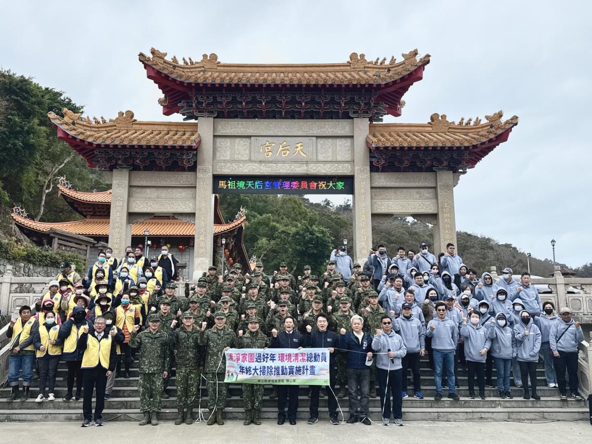 【記者王致潔報導】年終大掃除起跑!連江縣環資局今日上午在馬港天后宮前舉辦誓師大會,局長陳忠義率清潔隊、支援弟兄與志工會師。縣長王忠銘、指揮官尹昌榮、鄉長林志東到場致意。