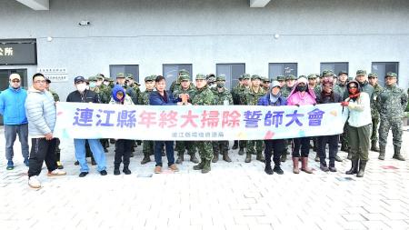 【本報訊】東引鄉115年年終大掃除活動昨(19)日正式展開,上午9時在聯合辦公大樓廣場舉行誓師大會,宣告為期5天的環境清潔工作全面啟動。鄉長林德建出席勉勵,肯定國軍官兵不畏辛勞、全力支援地方清潔工作的付出,並致贈加菜獎勵金,感謝國軍在肩負戰備任務之餘,仍投入年終大掃除行列,軍民攜手打造整潔舒適的生活環境,以嶄新氣象迎接農曆新年到來。