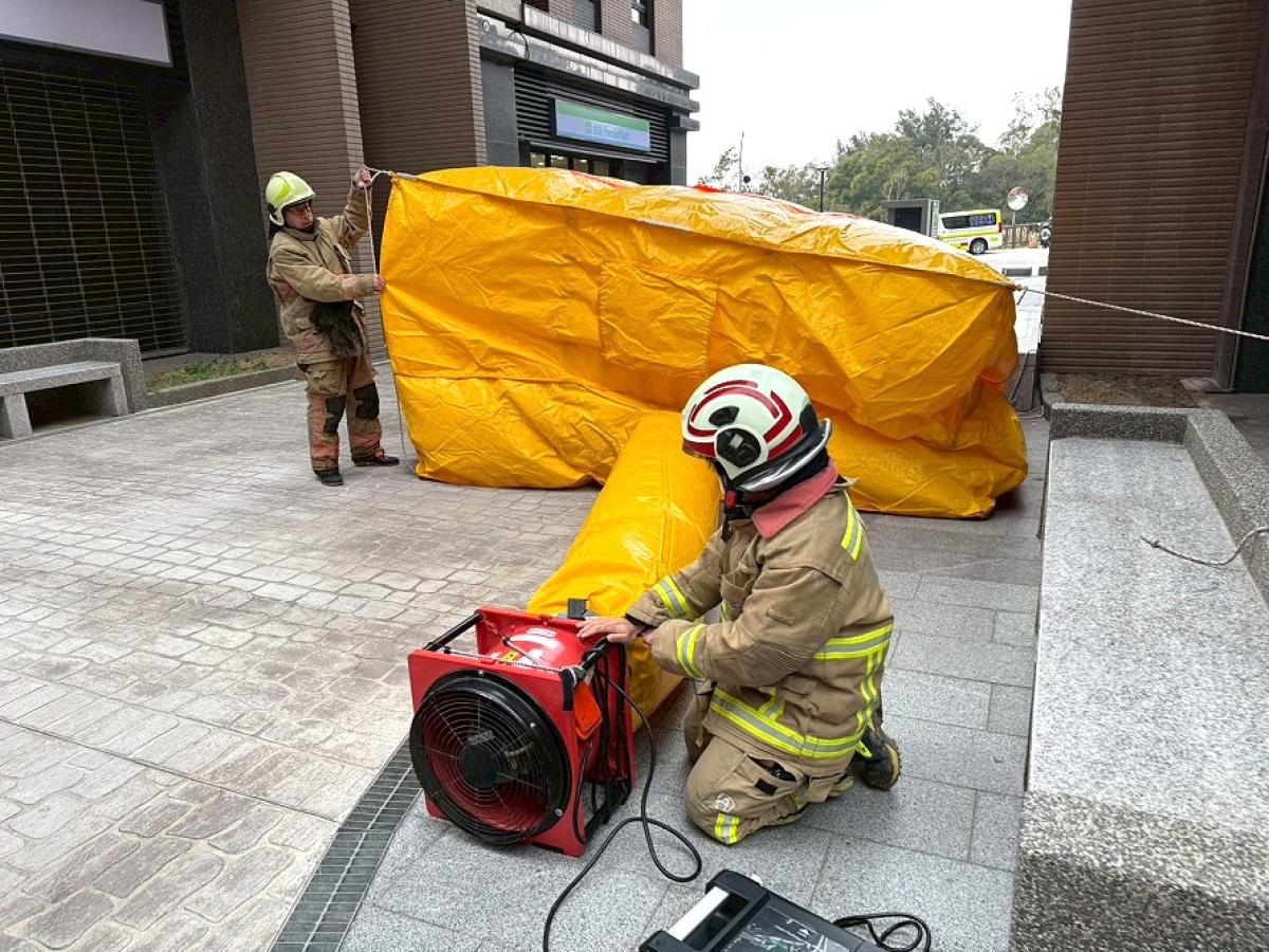 第一大隊指出,高樓火災具備火勢蔓延快速、濃煙易於垂直流竄等特性,搶救難度高。本次演練特別加強梯具救援運用,在火災初期即建立外部救援通道,爭取黃金救援時間,提升受困人員存活機率。
