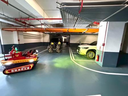 同時,消防局整合新式科技救災裝備,導入救災無人機與消防機器人實地演練。透過無人機高空熱顯像偵測,即時掌握火勢發展與可能受困位置;消防機器人則可代替消防人員進入高溫或結構不穩的危險區域進行射水壓制,在提升救災效率的同時,也有效降低第一線救災人員的風險。