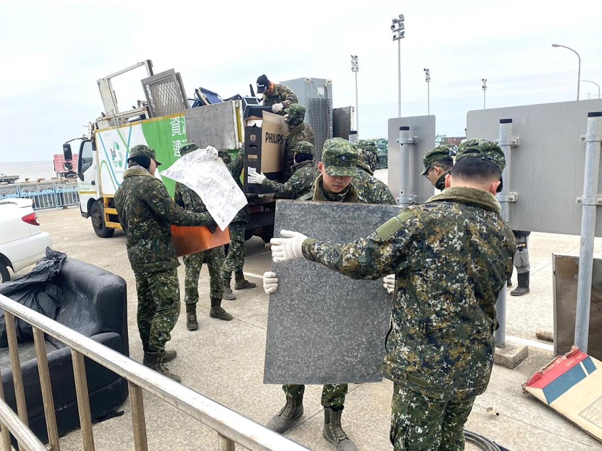 北竿年終大掃除最後一天清潔行動前往白沙村,軍民合力清運大型廢棄物。(圖/文:鄭禮頤)