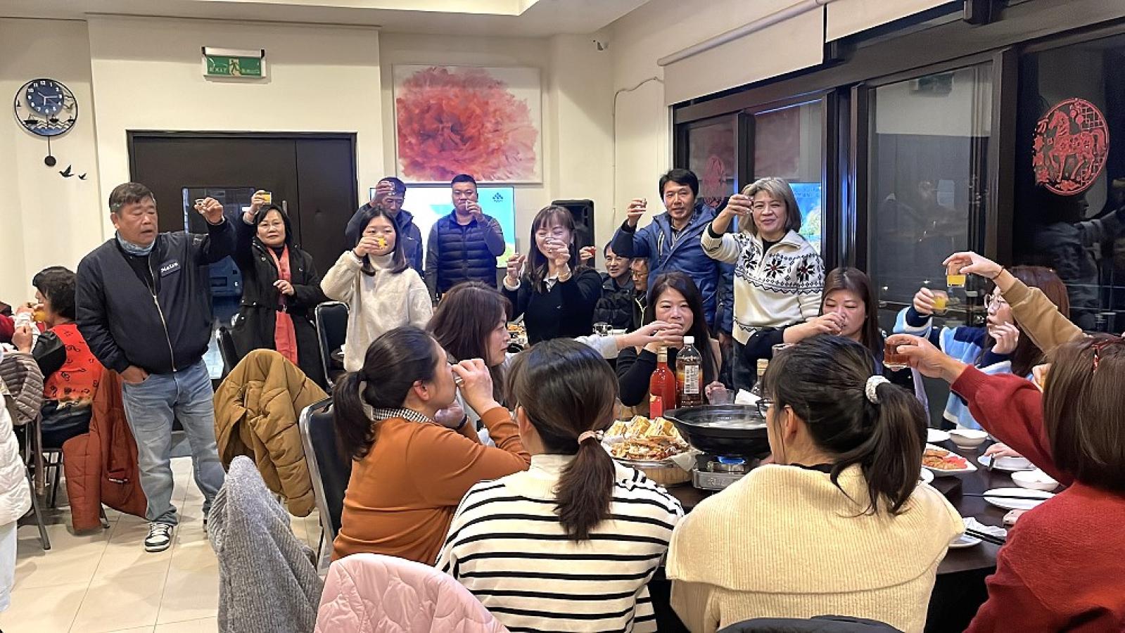 婦女會西莒分會年終聯誼餐會,姊妹齊聚一堂,場面熱鬧溫馨。(圖/文:宋幸儒)
