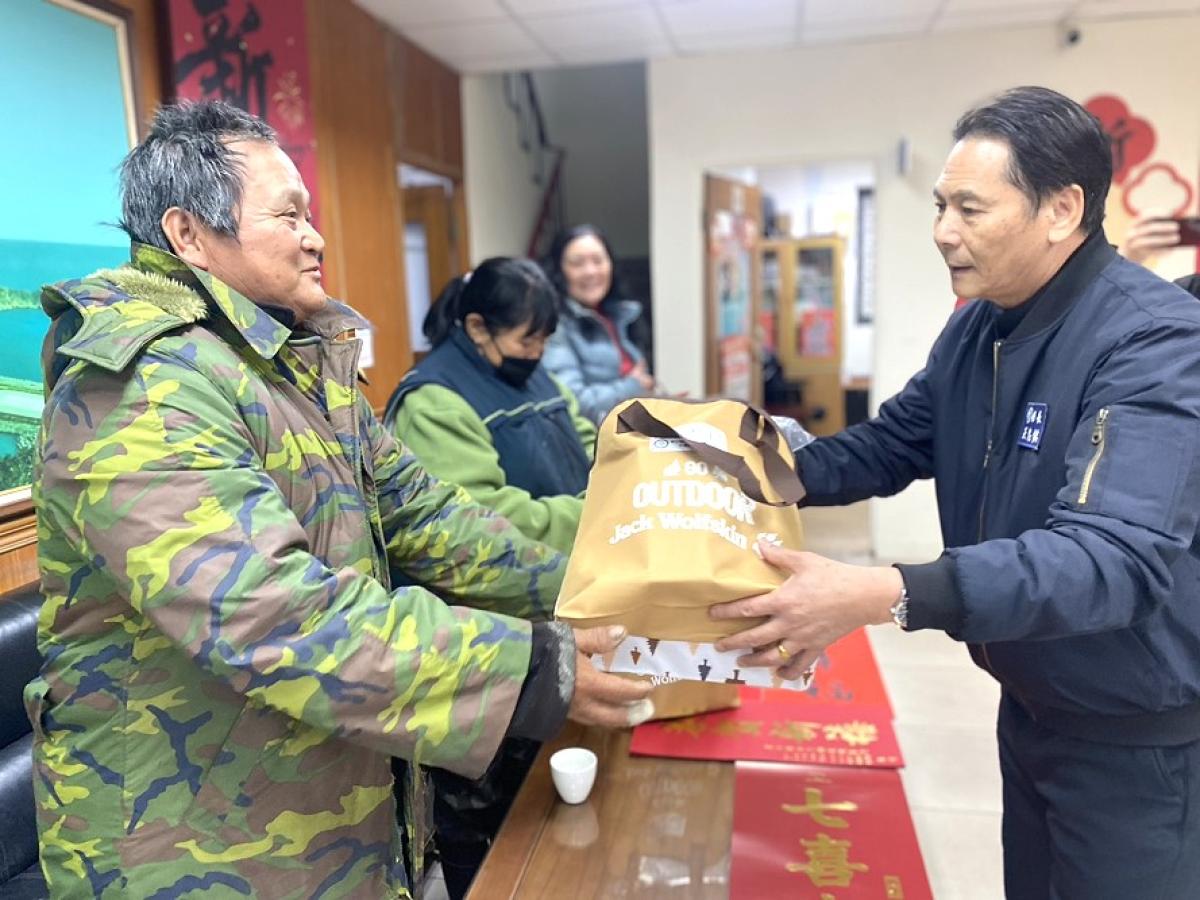 縣府團隊前往北竿鄉關懷原住民長者,致贈保暖毛帽及冬季生活物資,傳遞寒冬送暖關懷。(圖/文:鄭禮頤)