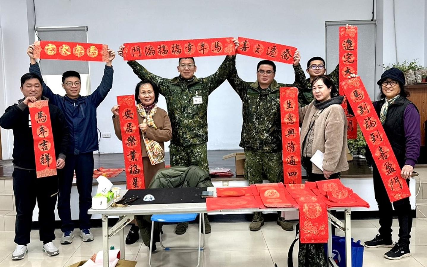 【記者蔡夢玲報導】金馬報喜、福到萬家!莒光鄉公所與莒光守備大隊攜手辦理馬年新春揮毫贈春聯活動,一樣由島上熟悉的軍中弟兄龔宇豐坐鎮揮毫,春聯免費索取、內容還能客製,現寫現拿,把祝福直接帶回家。