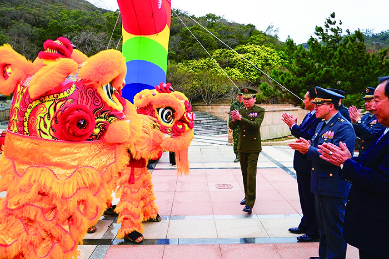 馬防部舞獅隊支援典禮展演 獅陣騰躍賀勳 後備英氣發揚