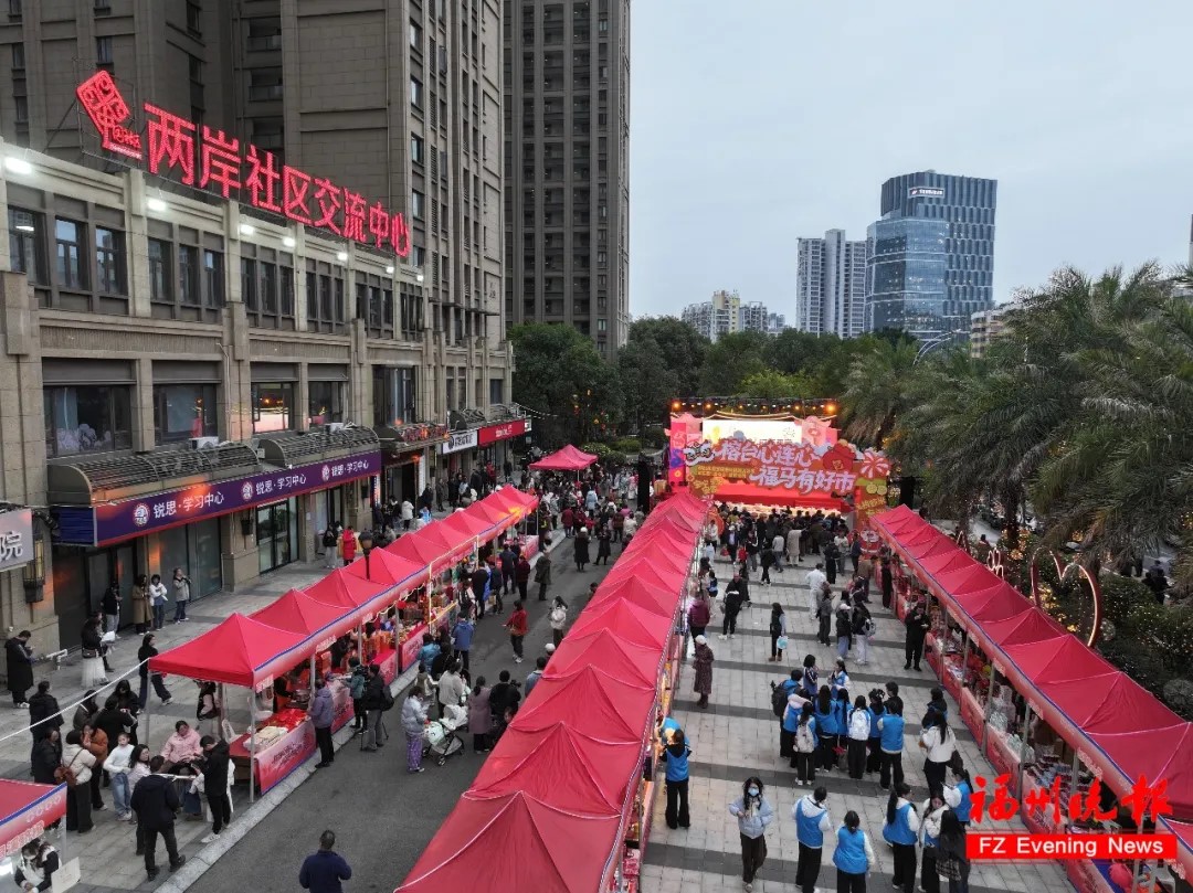 集市緊扣兩岸融合主題,彙集福建老字型大小、臺灣優質品牌,特設士林夜市區、臺灣年貨展區、福建年貨展區、非遺展區四大主題展區50多家攤位。臺灣高山茶、鳳梨酥、大腸包小腸、珍珠奶茶、堅果炒貨、手作點心等寶島風味,以及佛跳牆、年糖年餅、魚丸、青紅酒、建甌板鴨等八閩珍饈琳琅滿目,一站式盡享榕台的年節底蘊與煙火氣息。